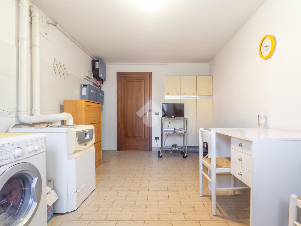 L’accesso carrabile conduce a un garage di grandi dimensioni che può ospitare 3 automobili, collegato internamente alla taverna: un ambiente caldo e conviviale, con camino, zona divani, grande tavolo per cene in compagnia, cucinotto e una stanza aggiuntiva versatile. Da qui si accede anche a una comoda lavanderia finestrata e al collegamento con i piani superiori.