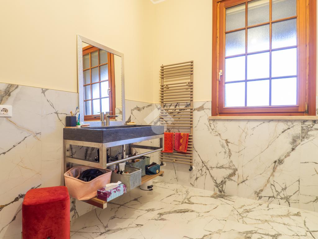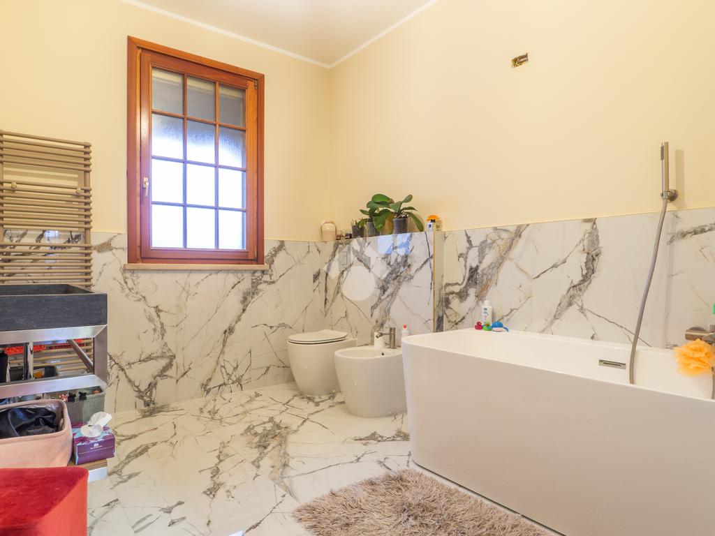 L’immobile è dotato di impianto di climatizzazione e impianto di allarme, serramenti in legno e vetrocamera, zanzariere, scuri esterni in legno e tendoni solari.