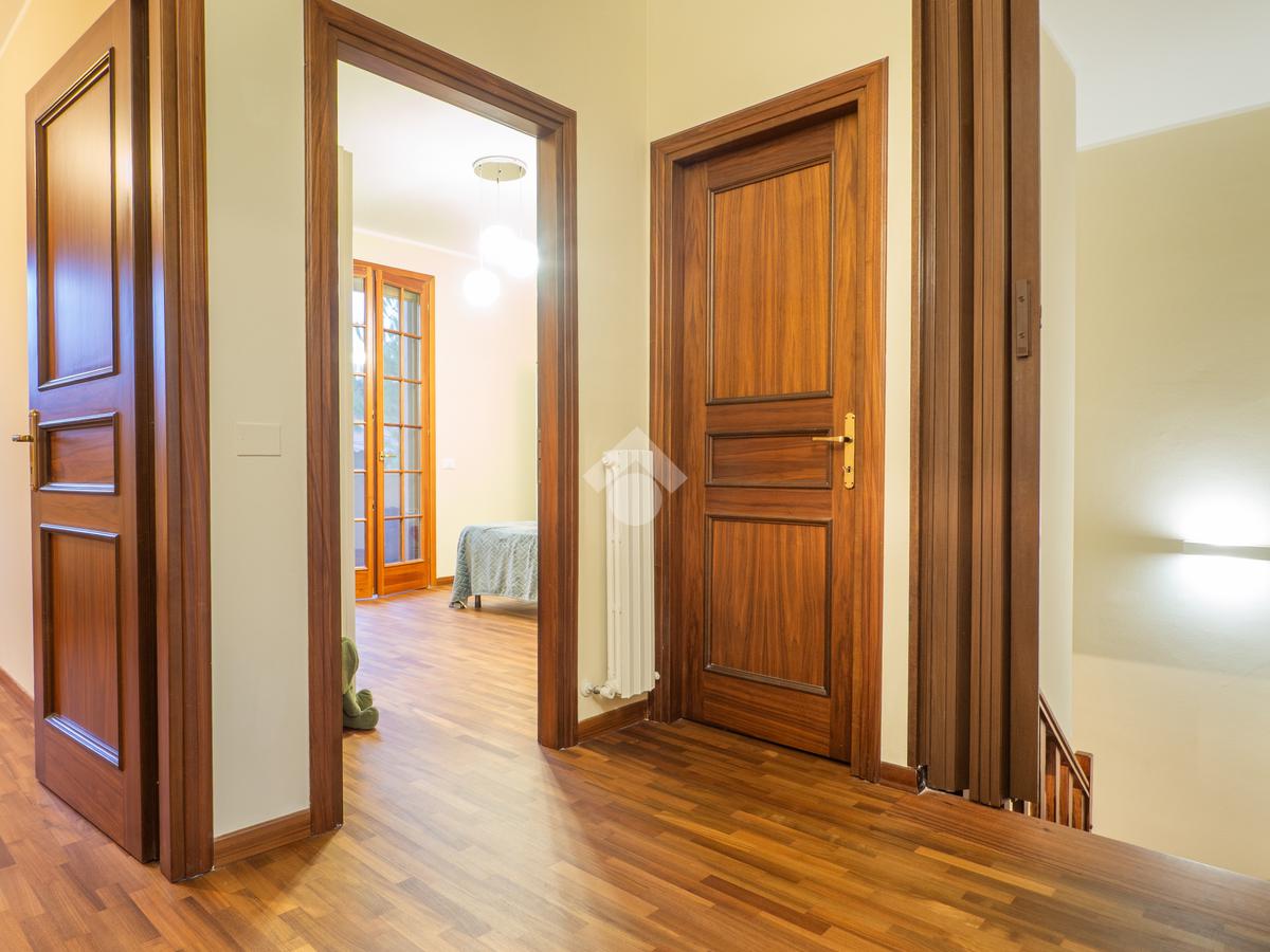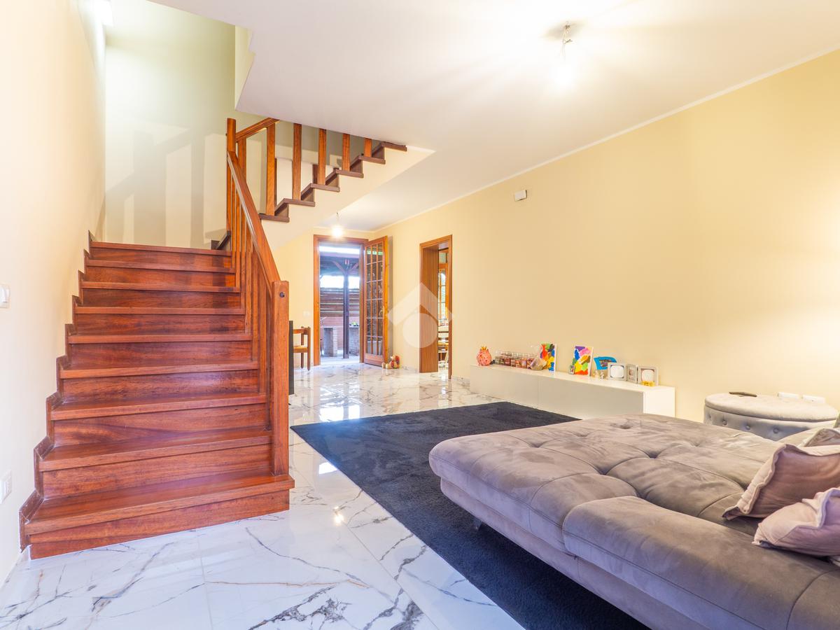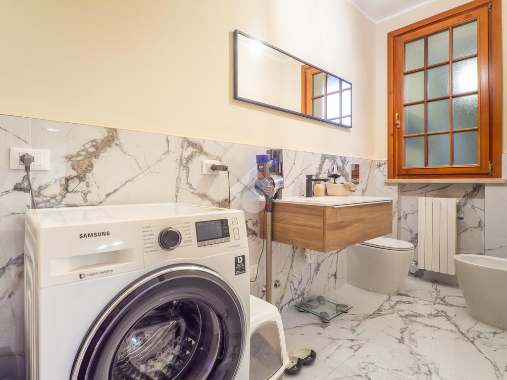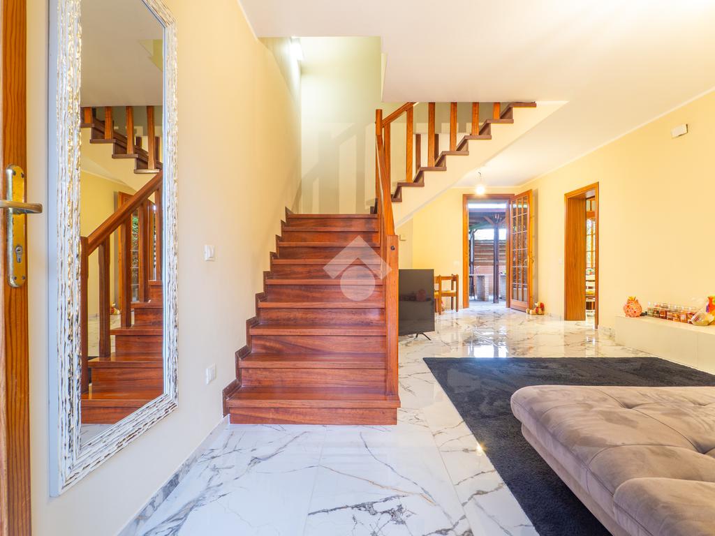 L’abitazione si sviluppa in ingresso su luminoso soggiorno con zona pranzo, cucina abitabile con accesso al giardino posteriore attrezzato con un ombreggiato gazebo per pranzi e cene all’aperto. Completa il piano terra un bagno finestrato con zona lavanderia e sanitari. Al primo piano, la zona notte consta di tre ampie camere da letto, di cui due matrimoniali con un balcone privato ciascuna, e una singola comoda, un utile ripostiglio e due bagni entrambi finestrati. Il primo bagno è dotato di una bella vasca freestanding mentre il secondo ha una comoda doccia walk in. I pavimenti della zona giorno sono in gres porcellanato di grande formato e superficie lucida per un effetto ottico di grande luminosità e profondità, mentre le camere da letto hanno il parquet che le rende calde e accoglienti.