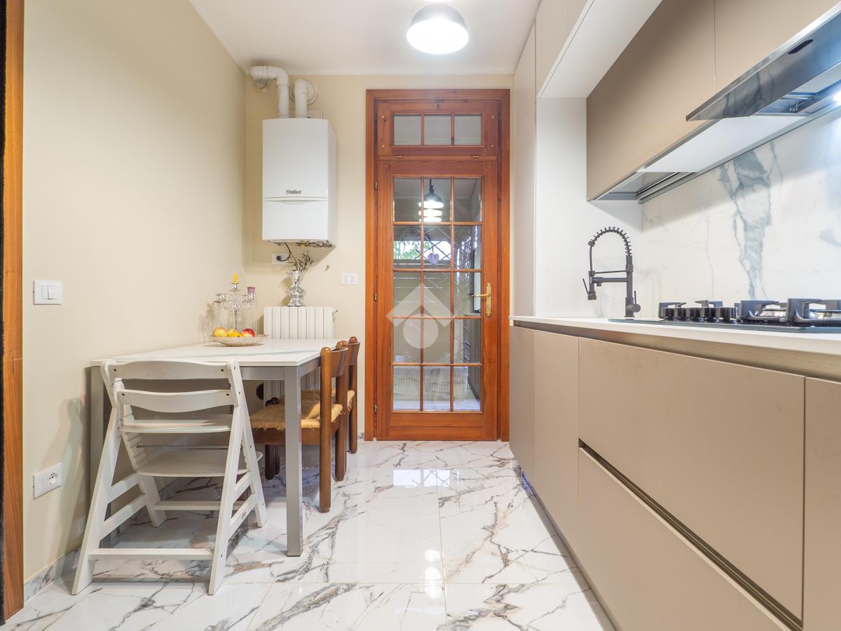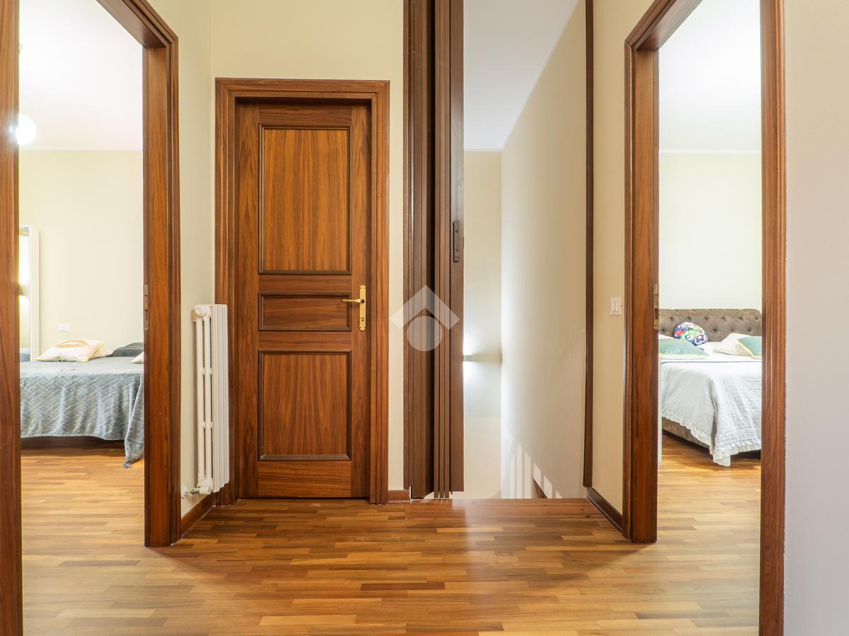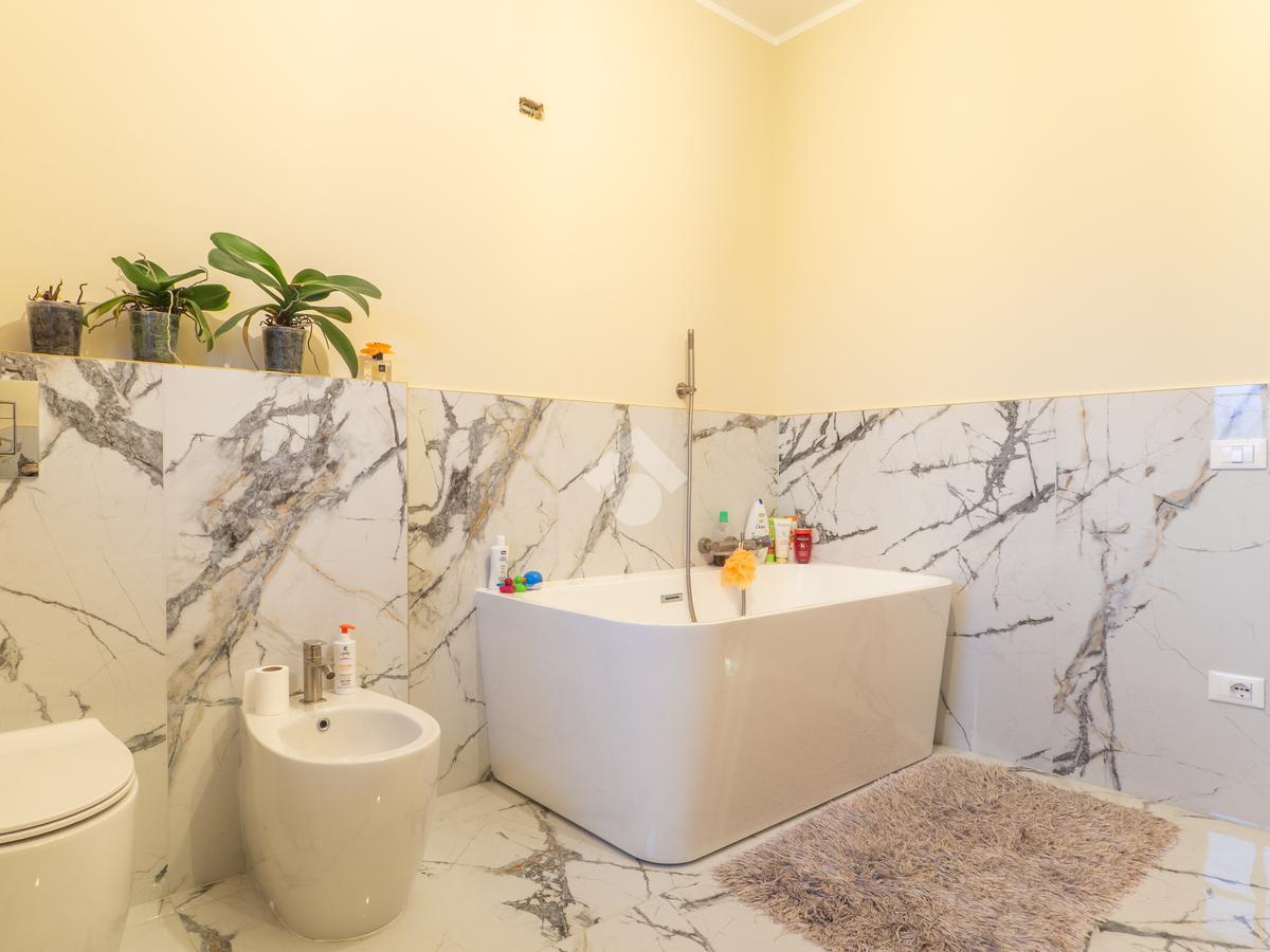 L’abitazione si sviluppa in ingresso su luminoso soggiorno con zona pranzo, cucina abitabile con accesso al giardino posteriore attrezzato con un ombreggiato gazebo per pranzi e cene all’aperto. Completa il piano terra un bagno finestrato con zona lavanderia e sanitari. Al primo piano, la zona notte consta di tre ampie camere da letto, di cui due matrimoniali con un balcone privato ciascuna, e una singola comoda, un utile ripostiglio e due bagni entrambi finestrati. Il primo bagno è dotato di una bella vasca freestanding mentre il secondo ha una comoda doccia walk in. I pavimenti della zona giorno sono in gres porcellanato di grande formato e superficie lucida per un effetto ottico di grande luminosità e profondità, mentre le camere da letto hanno il parquet che le rende calde e accoglienti.