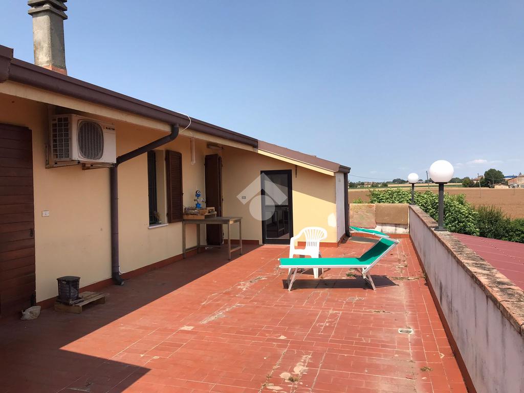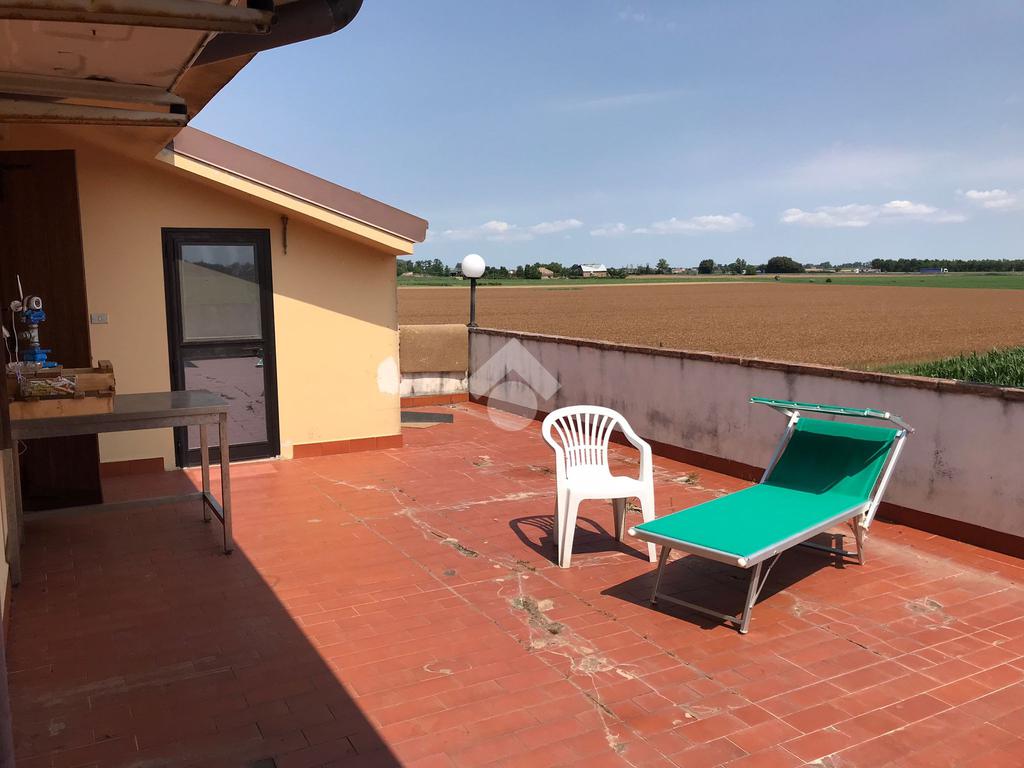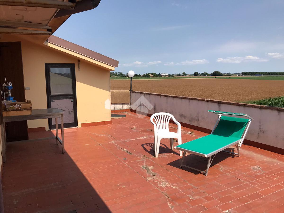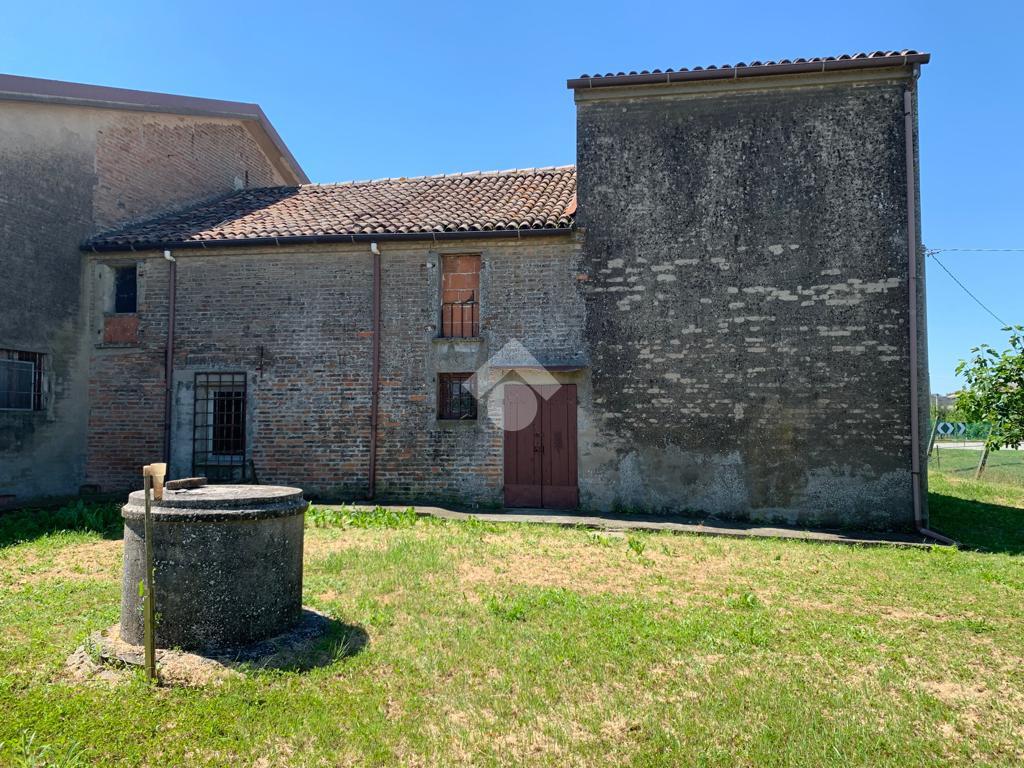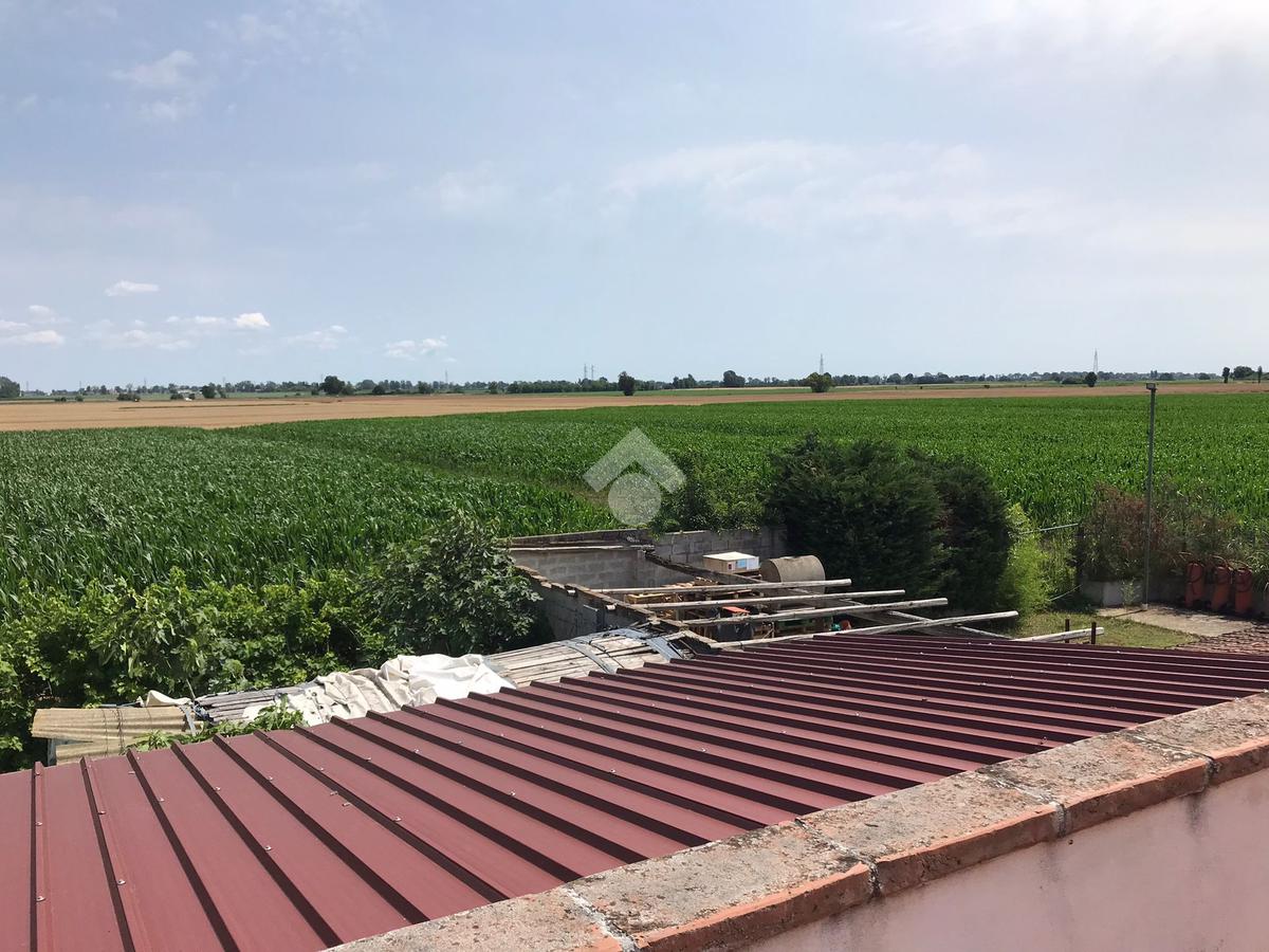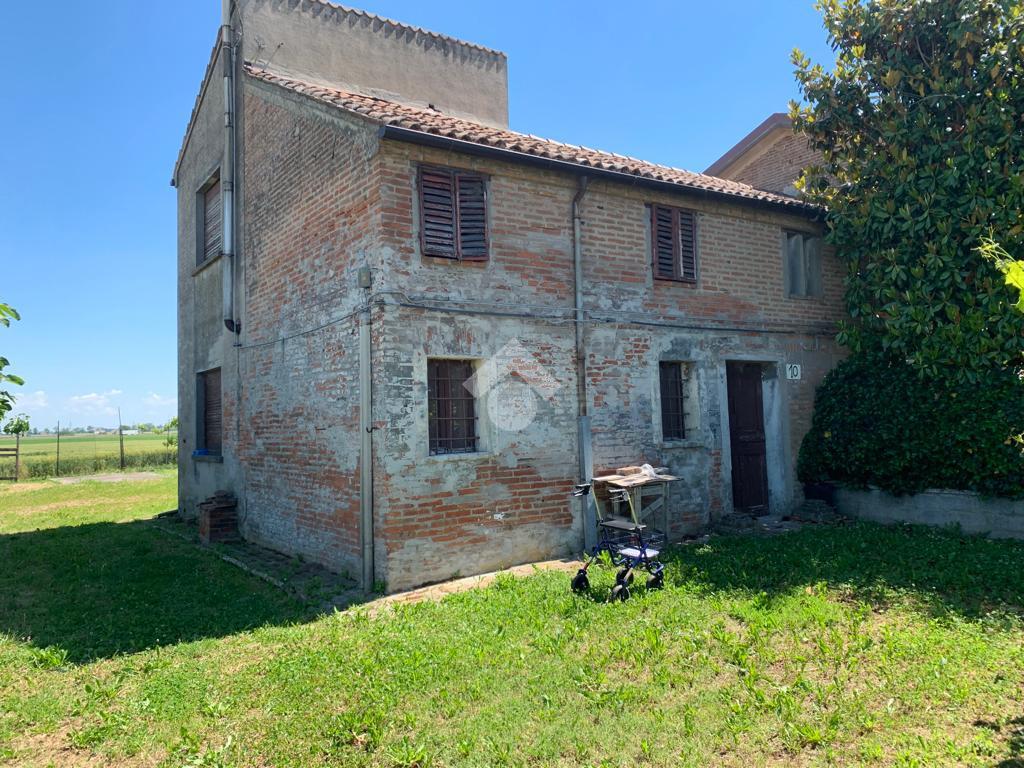 MASI SAN GIACOMO: Nella campagna alle porte del paese di Masi San Giacomo, vicino all'uscita della superstrada Ferrara-Mare, proponiamo un fabbricato indipendente costituito da una parte ristrutturata, abitabile e ben tenuta, posta al primo piano e composta da ingresso, vano scala, 2 camere da letto matrimoniali, studio, un bagno, un'ampia sala, una cucina abitabile e un grande terrazzo di oltre 50,00 mq. Poi ci sono altre due porzioni di casa indipendenti da ristrutturare affiancate al fabbricato, mentre sul retro c'è un grande magazzino, un garage e altri locali da deposito. Grande scoperto privato intorno all'abitazione. Ideale per chi cerca tranquillità e magari necessita di avere magazzini da deposito e locali tipo laboratori per la propria attività lavorativa. Ampio scoperto esterno anche per mezzi da lavoro. Riscaldamento autonomo.