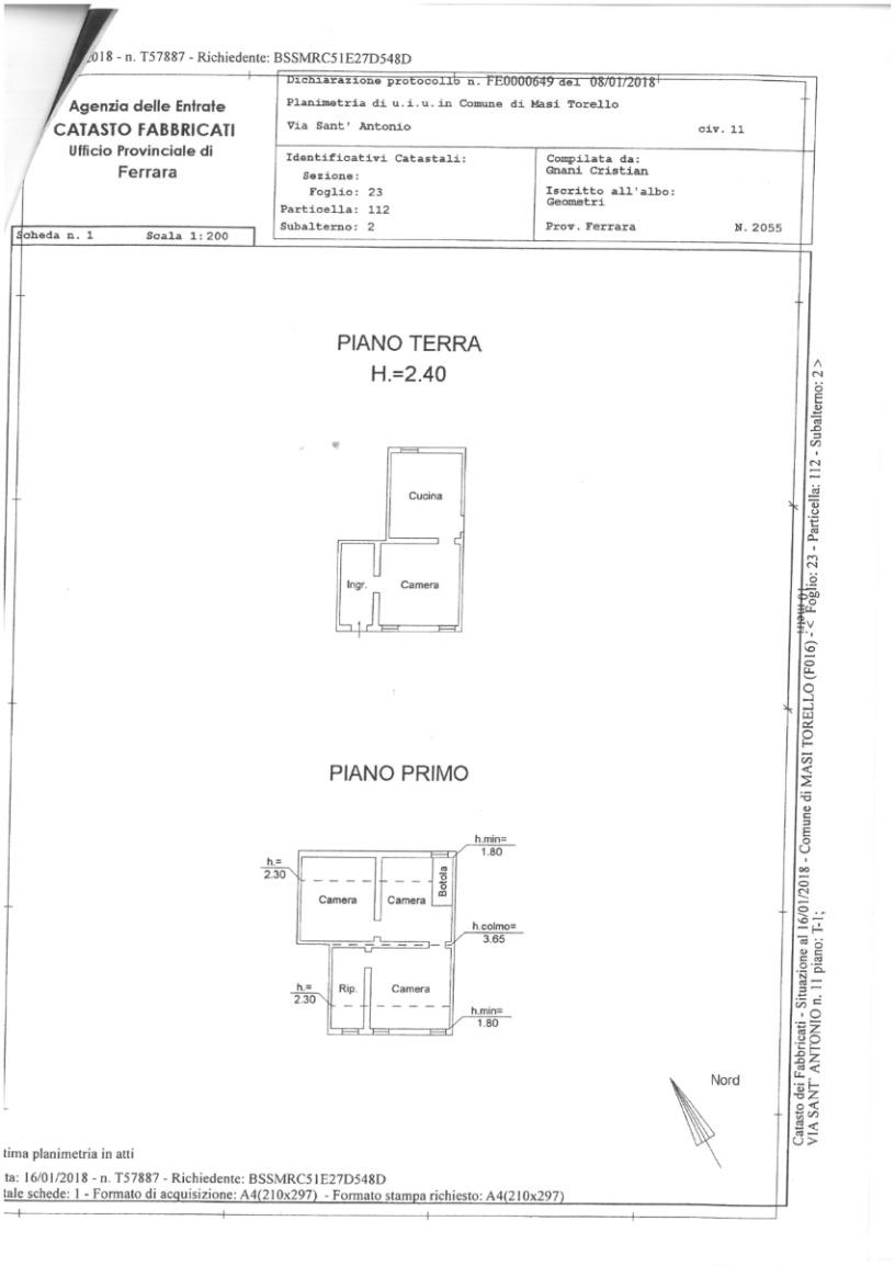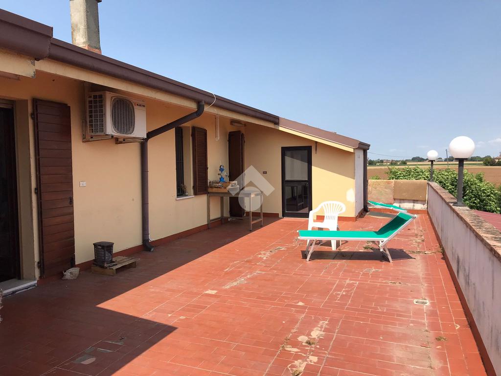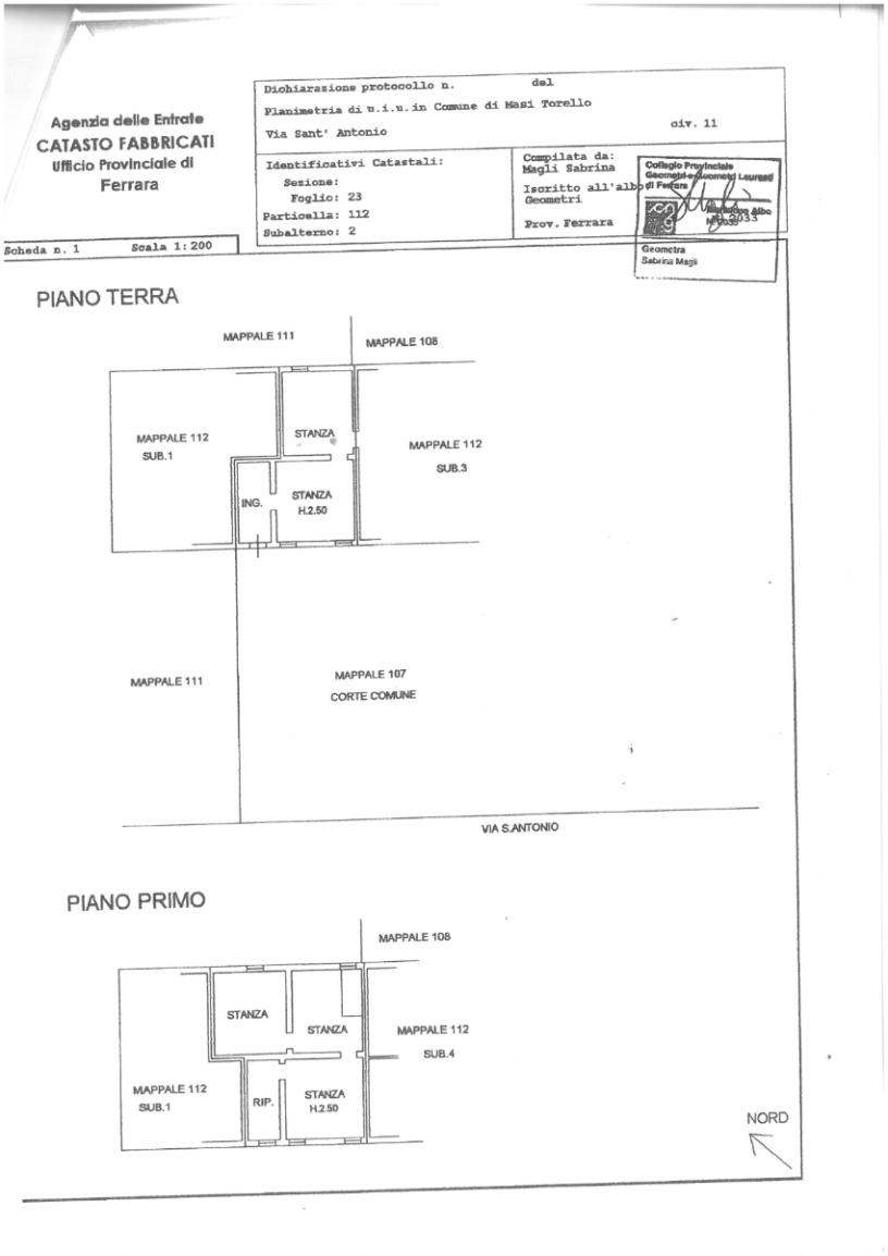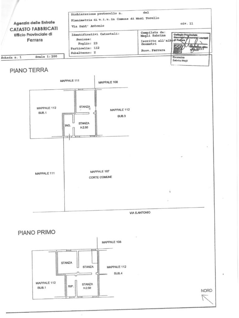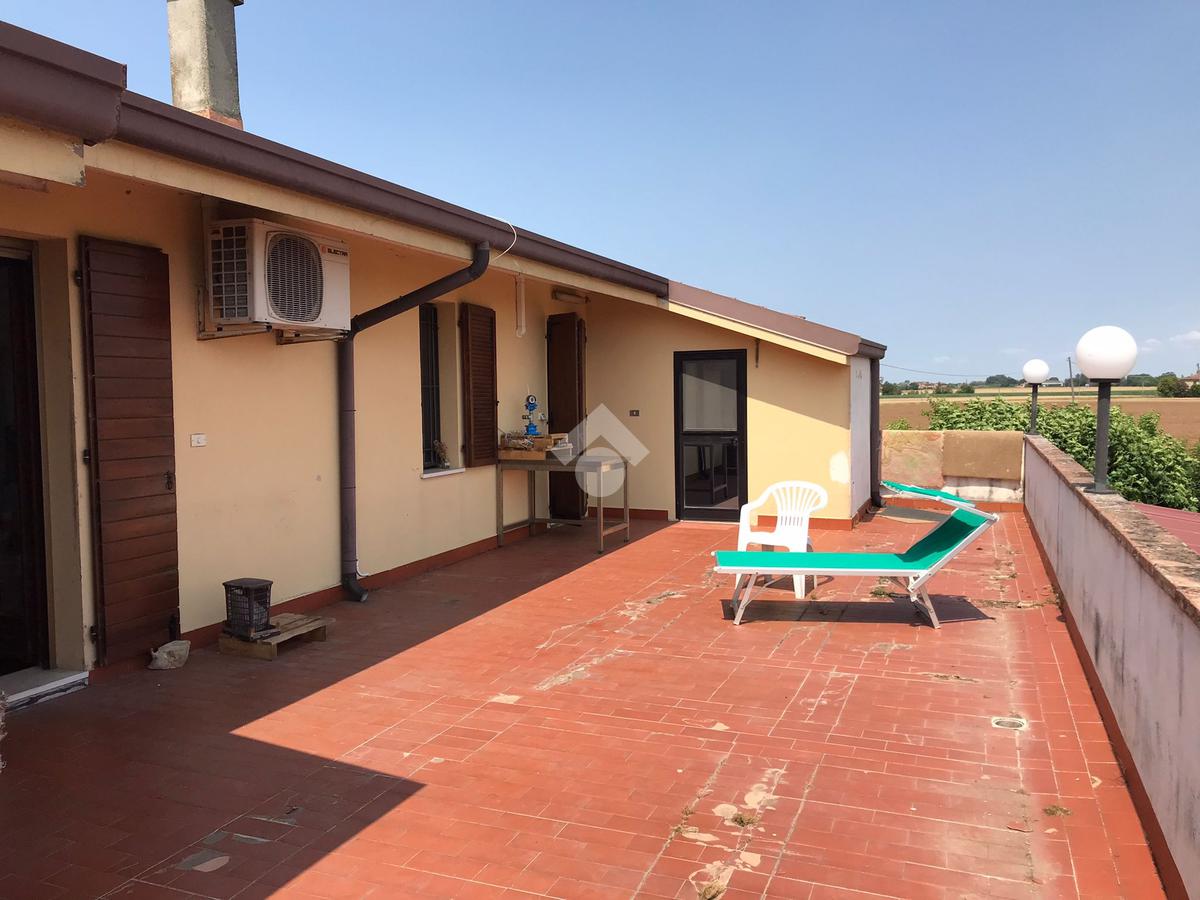 MASI SAN GIACOMO: Nella campagna alle porte del paese di Masi San Giacomo, vicino all'uscita della superstrada Ferrara-Mare, proponiamo un fabbricato indipendente costituito da una parte ristrutturata, abitabile e ben tenuta, posta al primo piano e composta da ingresso, vano scala, 2 camere da letto matrimoniali, studio, un bagno, un'ampia sala, una cucina abitabile e un grande terrazzo di oltre 50,00 mq. Poi ci sono altre due porzioni di casa indipendenti da ristrutturare affiancate al fabbricato, mentre sul retro c'è un grande magazzino, un garage e altri locali da deposito. Grande scoperto privato intorno all'abitazione. Ideale per chi cerca tranquillità e magari necessita di avere magazzini da deposito e locali tipo laboratori per la propria attività lavorativa. Ampio scoperto esterno anche per mezzi da lavoro. Riscaldamento autonomo.